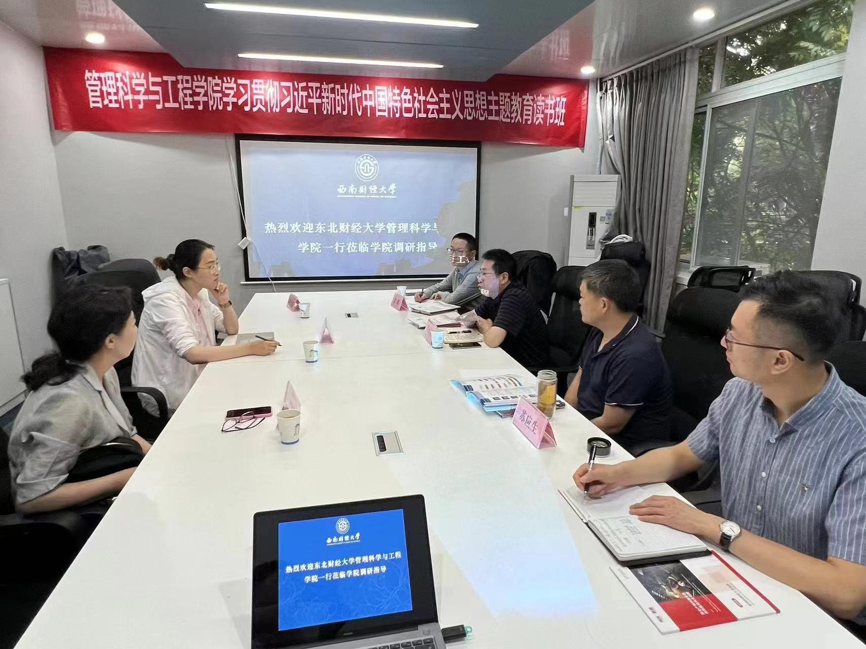 6月5日上午,东北财经大学太阳成集团tyc33455cc副经理田甜一行来公司调研交流,公司经理鲁万波、副经理肖辉、管理科学与工程系主任苏应生等参加了调研交流会。双方以深入开展学习贯彻习近平新时代中国特色社会主义思想主题教育为契机,认真贯彻落实《关于在全党大兴调查研究的工作方案》,围绕课程思政、团队建设、党建与业务融合发展等问题展开深入研讨交流。