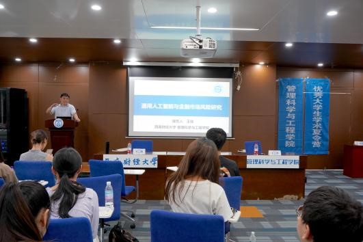 接下来,王俊副教授也为营员们作了题为“通用人工智能与金融市场风险研究”的学术交流讲座。王俊教授贴合公司财经特色,发挥管科学科优势,在证券市场的金融量化、风险管理等领域已经有了坚实的研究基础,他向营员们分享了目前正从事的数据融合、可持续金融研究等前沿领域发展,号召同学们积极投身管理科学交叉融合的发展前沿。