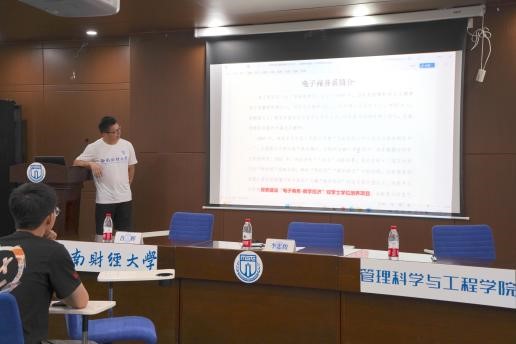 电子商务系系主任李忠俊副教授就“数字经济”热点话题展开系所介绍,指出电商系正在积极培养服务国家重大需求的既懂“电子商务”又懂“数字经济”的交叉复合型人才,系所的专业建设、教学建设、科学研究均围绕我国数字经济发展,不断深耕电商专业与其他财经类专业和数字技术的交叉融合领域。