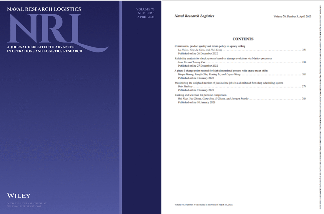 管理科学与工程专业2018级硕博贯通项目博士研究生张瑶,在其导师指导下,共同完成学术论文“Ranking and selection for pairwise comparison”,并于2023年4月在《Naval Research Logistics》第70卷第3期上发表。