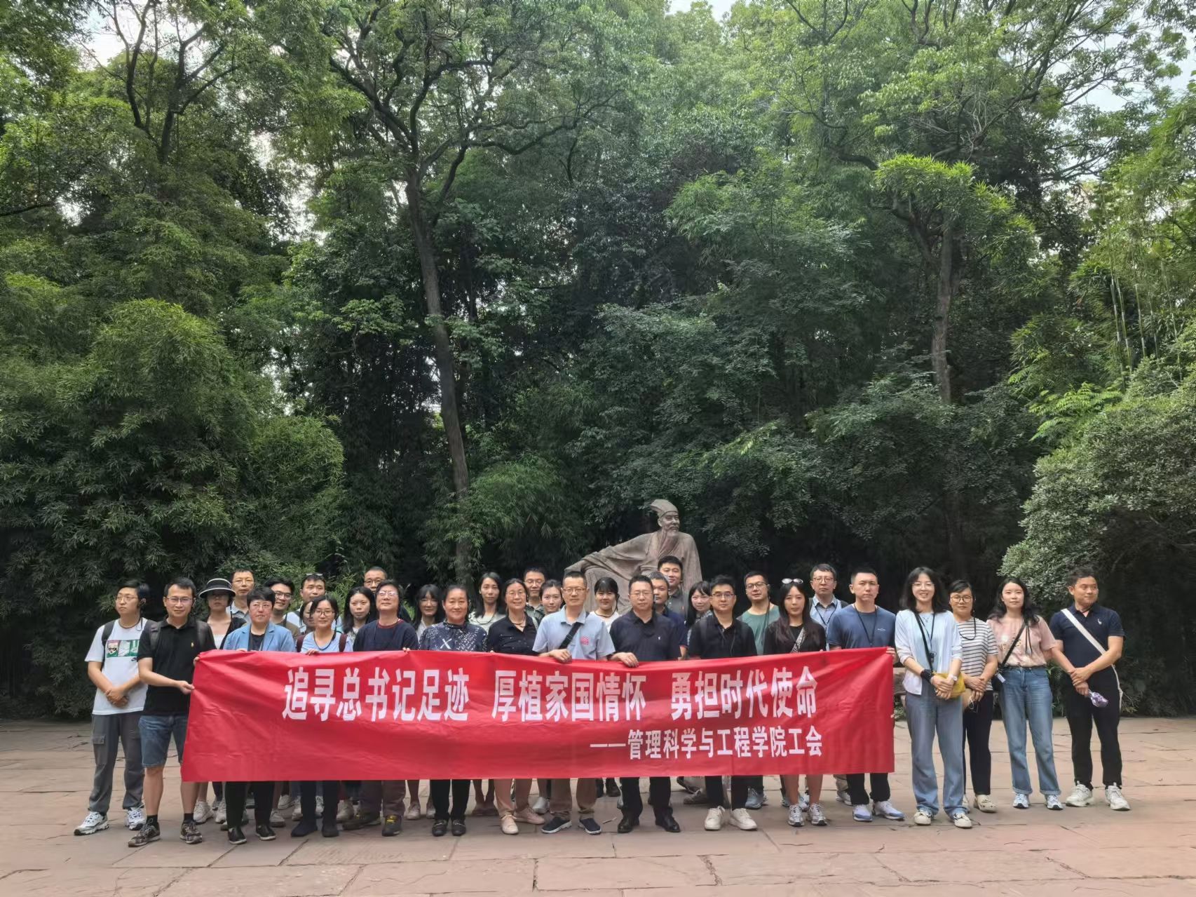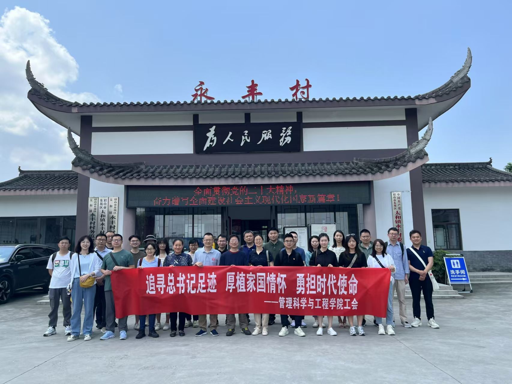 为持续深入学习贯彻习近平新时代中国特色社会主义思想,认真贯彻习近平总书记来川视察重要指示精神,传承中华优秀传统文化,凝心聚力提升团结引领力,引导公司教职工进一步坚守立德树人初心、担当教书育人使命,太阳成集团tyc33455cc分工会5月21日组织公司教职工,赴眉山市太和镇永丰村和三苏祠开展“追寻总书记足迹,厚植家国情怀,勇担时代使命”的工会活动。