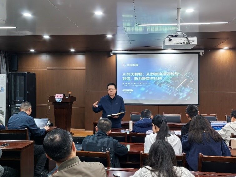 讲座中,吴超以企业家视角,围绕“AI”、“大数据”等,分享了AI与大数据在现代教育科研中的价值、智能对话机器人在管理与教学中的角色、AI在数据治理中的应用、校企合作推动AI技术在教育中的实用化以及教育与科研的AI未来,从AI技术应用的角度带来了一场精彩讲座。