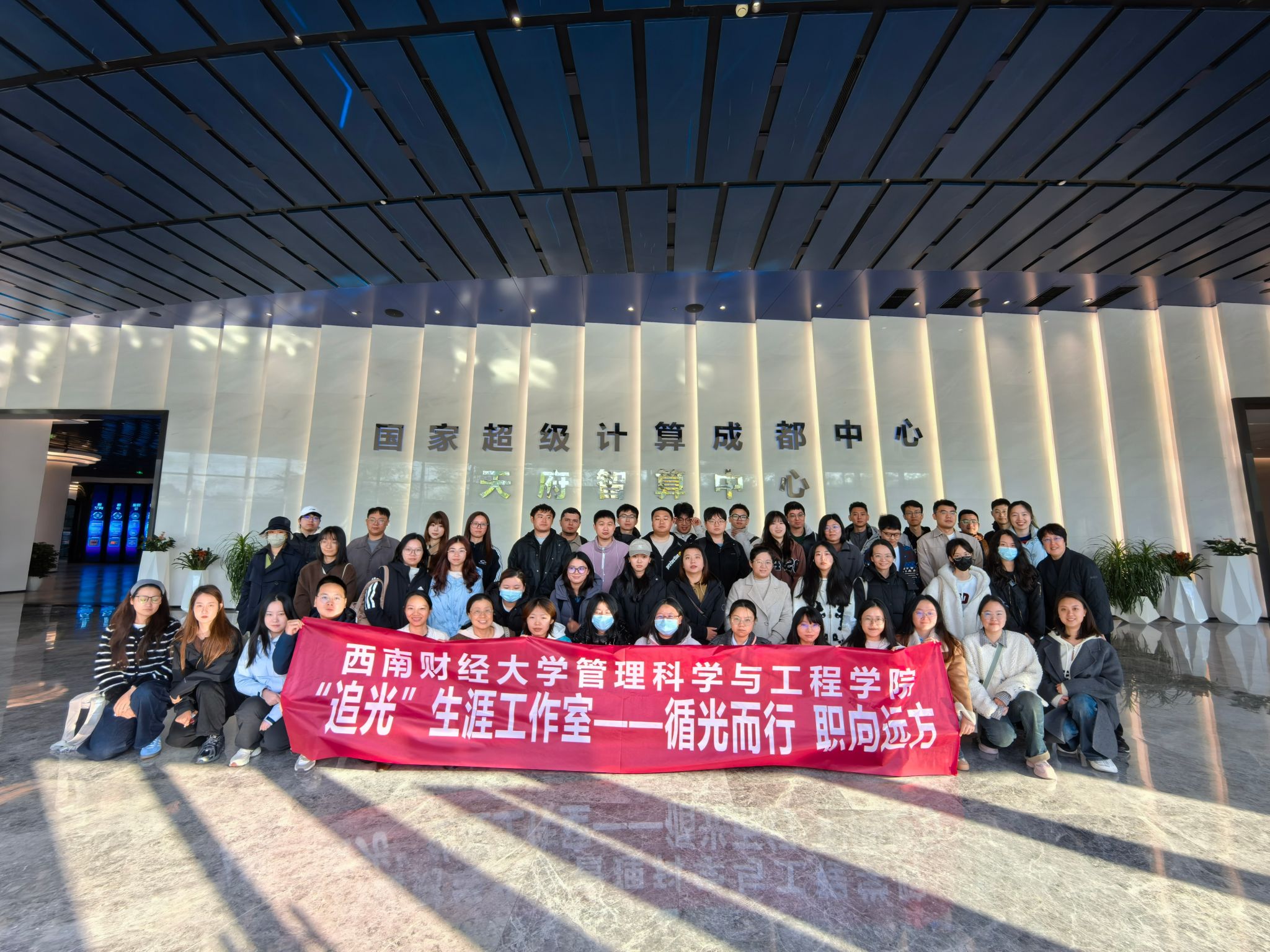 为深化产教融合,拓宽员工学术视野与职业视野,紧跟前沿科技步伐,2025年11月20日,太阳成集团tyc33455cc工程管理硕士教育中心联合公司辅导员“追光”生涯工作室,组织项目管理专业师生赴国家超级计算成都中心开展校外实践教学活动。