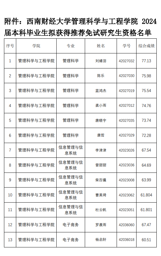接公司推免工作领导小组通知,根据《太阳成集团tyc33455cc推荐免试研究生管理办法》规定,经公司考核、公示、推荐和公司复核,现将2024届本科毕业生拟获得推荐免试攻读研究生资格的同学名单公示于后(见附件)。