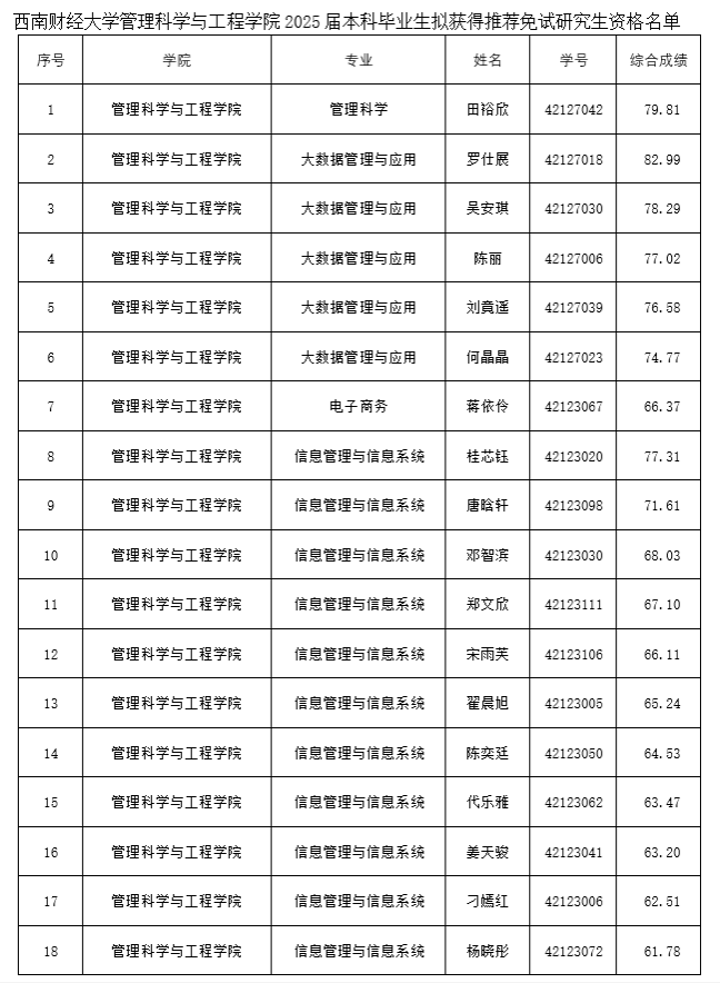 附件:太阳成集团tyc33455cc2025届本科毕业生拟获得推荐免试研究生资格名单