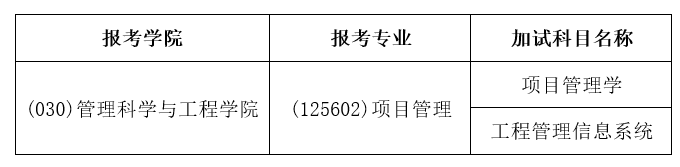 根据《2025年全国硕士研究生招生工作管理规定》第五十五条规定,以同等学力参加复试的考生,在复试中须加试至少两门与报考专业相关的本科主干课程。现将公司项目管理专业学位专业2025年复试加试科目补充通知如下,供考生参考。